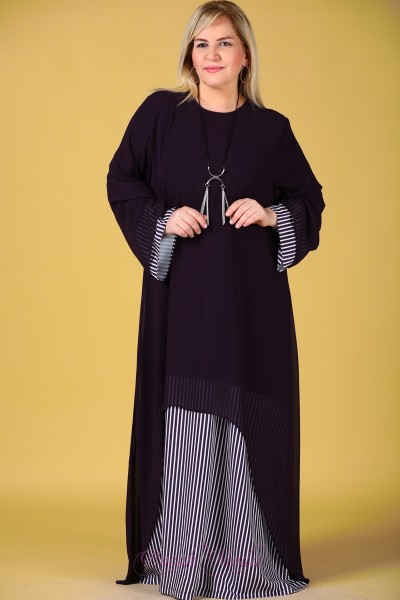 BÜYÜK BEDEN AKSESUAR DETAY KOYU YEŞİL ELBİSE